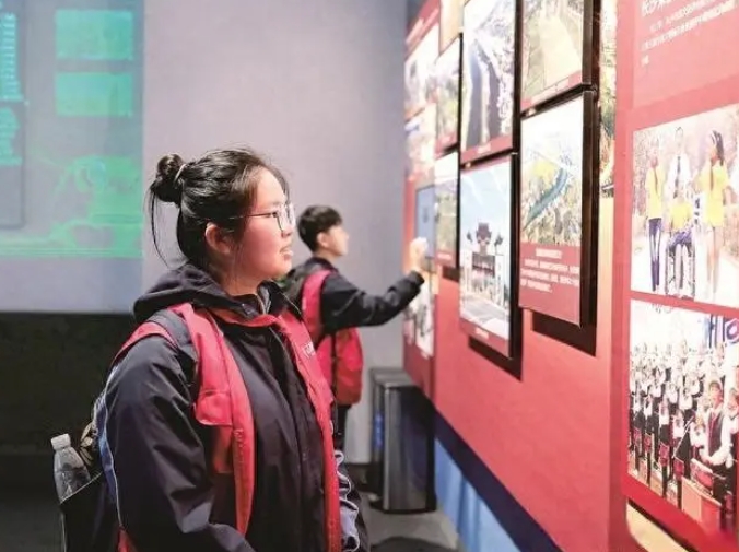 2月18日,湖南省长沙市八一路,市民在中国共产党长沙历史馆参观。寒假期间,长沙市众多家长带着孩子走进当地历史馆,学习历史知识,感受红色文化。 图片来源:视觉中国