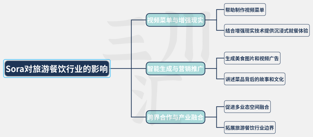 Sora的视频生成和图片生成功能,不仅为旅游餐饮企业提供了创新的营销手段和服务升级的机遇,还为推动行业跨界融合以及拓展旅游餐饮行业边界提供了更多可能。此外,这些功能还可以帮助餐饮企业实现线上预订、外卖配送等服务的优化,并重塑旅游餐饮行业的新未来。